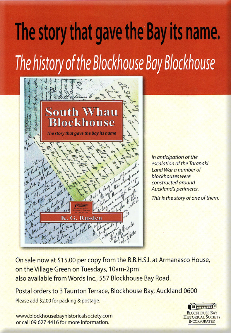 An advertisement in the New Zealander newspaper in April 1865 called for tenders for lease of the blockhouses that had not already been sold for removal or demolished. Those remaining for lease were Onehunga, Howick, Freemans Bay and the Whau.