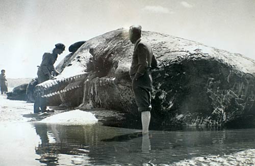 A Blockhouse Bay resident remembers… Friends took my husband and me in their boat to see the whale. Long before we got there we could smell it — not the usual bad fish smell but a cloying almost sweet rotting smell which became more and more powerful the nearer we got. I remember how amazed I was at the size of the carcass. I suppose when you see a whale on television most of it is underwater. The noise as we approached was unbelievable. It was like going into an industrial area. Clanking, thumping, squeaking, rushing sounds and splashing and a regular drumming which almost died away and then returned again and again. I suppose it was the poor creature’s insides starting to rot. We were saddened and appalled when we got alongside the carcass to see that someone had attacked it with a chain saw and cut out a section of jawbone and a tooth.