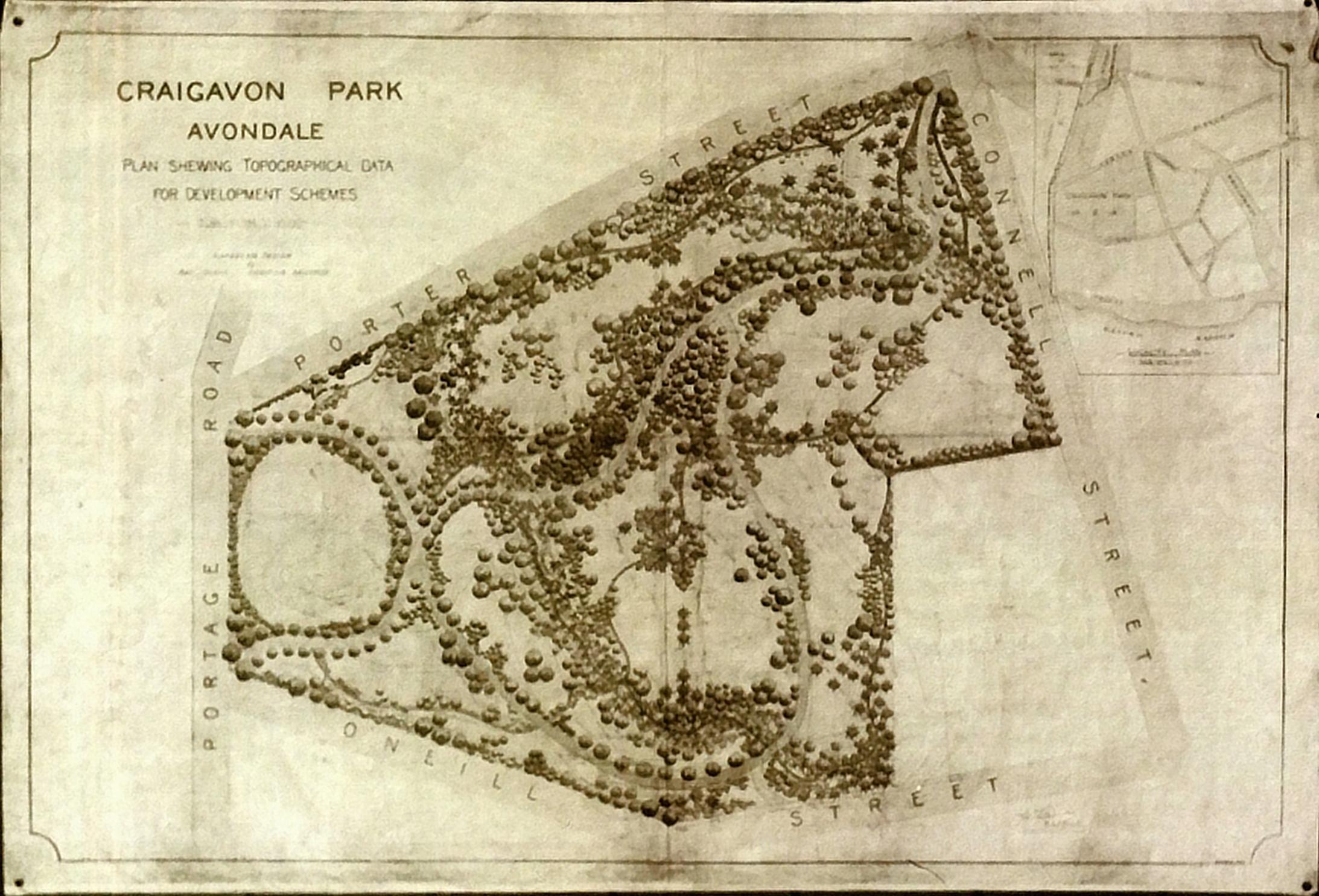 By the end of 1930 Craigavon Park needed extensive clearing and redesigning to achieve Marianne Smith’s vision so in late 1930 Fred Tschopp, a landscape architect employed by Auckland City Council for a couple of months, was commissioned to produce a set of design plans to revamp the park, later utilised. These would include a site survey and plans for tree planting and clearing of overgrown areas, shelter belts, driveways and paths. During the Depression the Council ran a series of Unemployed Relief Projects which ran parallel to existing park maintenance ventures. The plan was to utilise this relief labour on the Craigavon project. Fred Tschopp (1905-1980) from Switzerland was a trained Landscape Architect and New Zealand’s first modern practitioner in the area employed here between 1929- 32 by Government departments and local authorities in Auckland, Wellington and Rotorua. His role was to either create new forms of public spaces or recreate existing utilities. In circa 1934 earthwork for driveways, and constructions of entrances etc in Craigavon Park were carried out by relief labour.