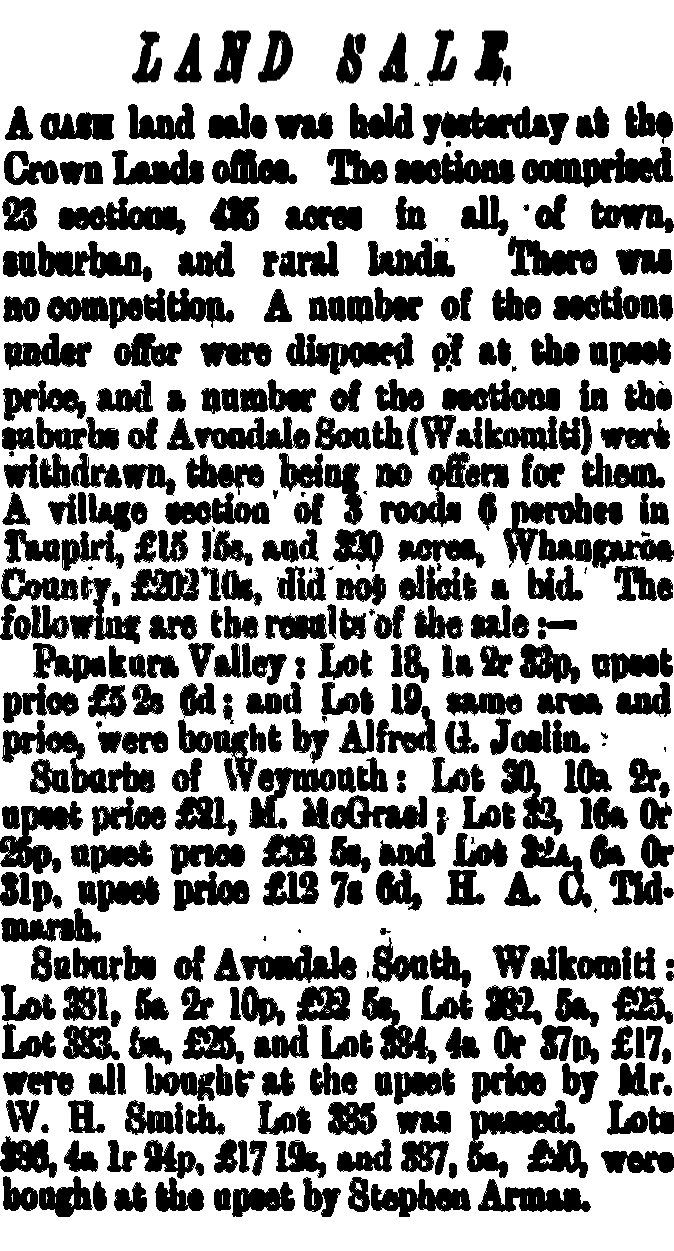 (Avondale South is one the old names for Blockhouse Bay)